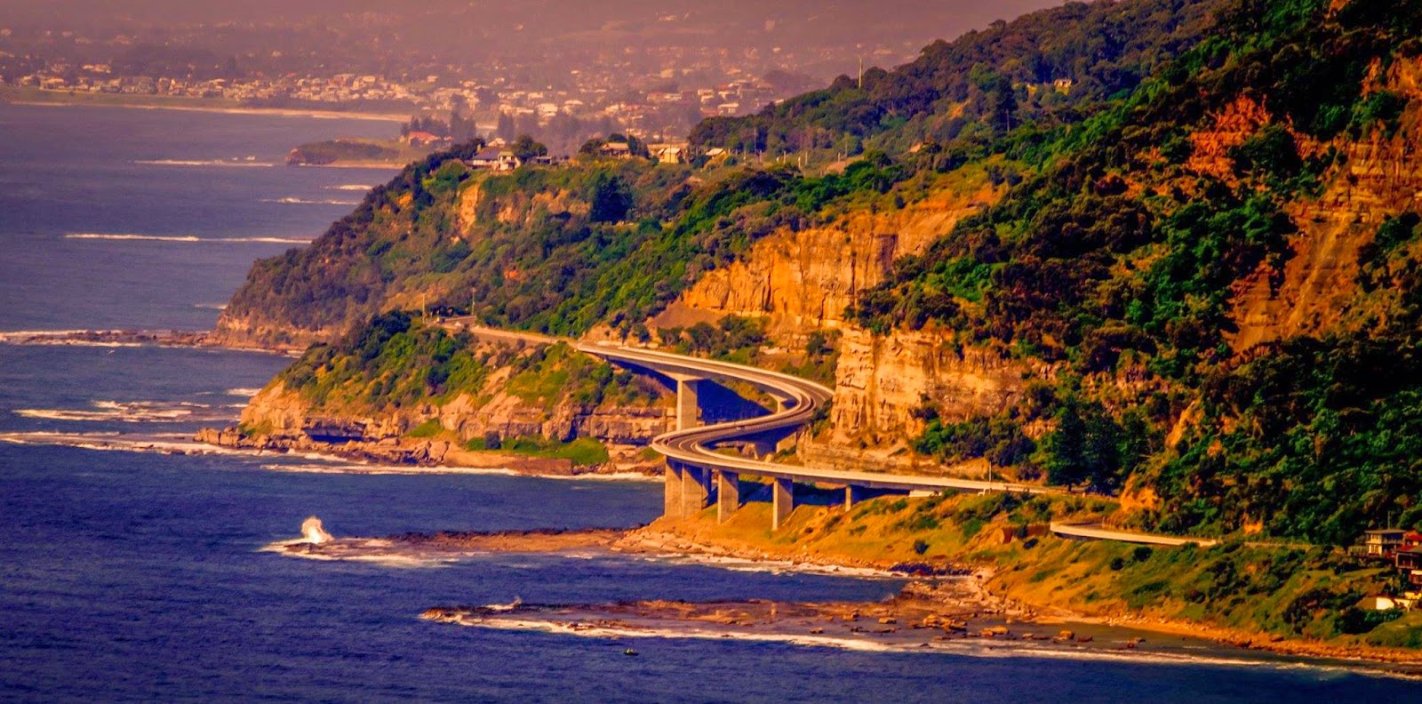 Let’s walk along Bald Hill today – a viewpoint just across the main road (around 42 km from Sydney CBD), which provides an incredibly beautiful view of the massive sea and Sea Cliff Bridge. You can even spot the train going round the distant hills.
