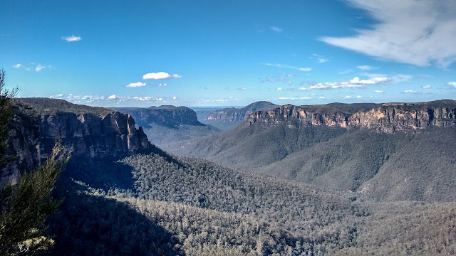 | Looking back at Bridal Falls, Horseshoe falls and Govett’s Lookout. |