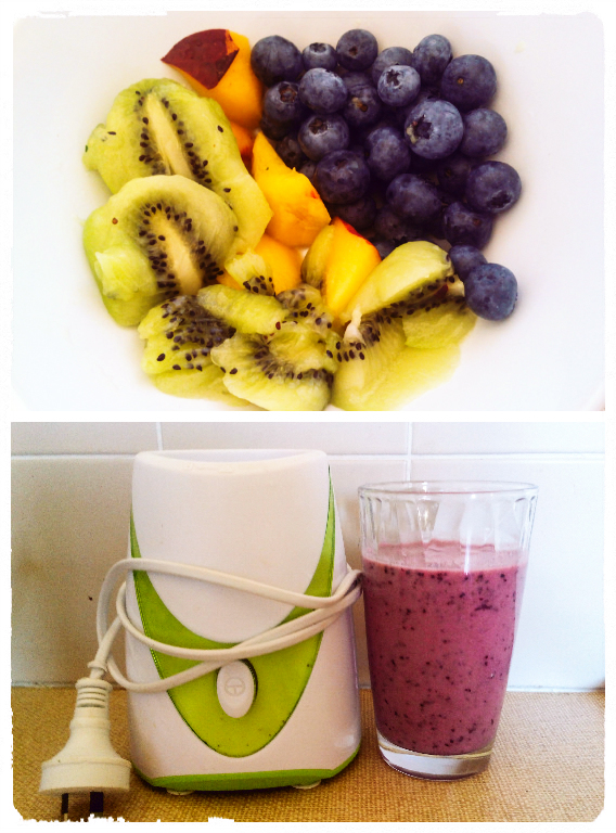 Kiwi, Peach and Blueberry Smoothie