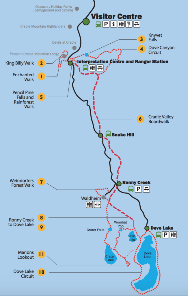 We bought a day pass at the entrance, which cost us about 16.50 per person. Due to many visitors that day, we had to park our car at the entrance and take a shuttle to Dove Lake Circuit. We had planned to walk around Dove Lake first, and later go on short hikes around the area. You can collect the map and receive other information from the information center at the ticket counter.