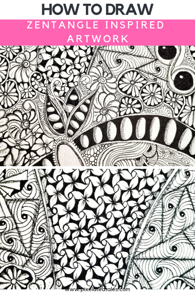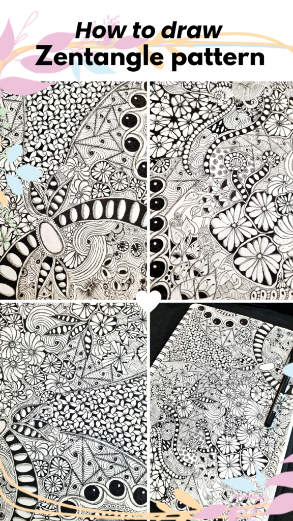 I often wonder if these tangled patterns mirror the chaos in my mind, too many thoughts intertwined, searching for a way out, coming alive through black-inked illustrations. I have to place each pattern mindfully; otherwise, my hand would instinctively fill every inch of white space, crowding the page. Today, I’m sharing my latest Zentangle-inspired artwork, created using tangle patterns I’ve learned from many different sources.