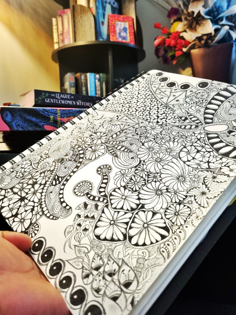 I would love to explore different art forms, but I gravitate towards zentangle, mainly because of the convenience. Just a paper and a pen – and a mind brimming with ideas.